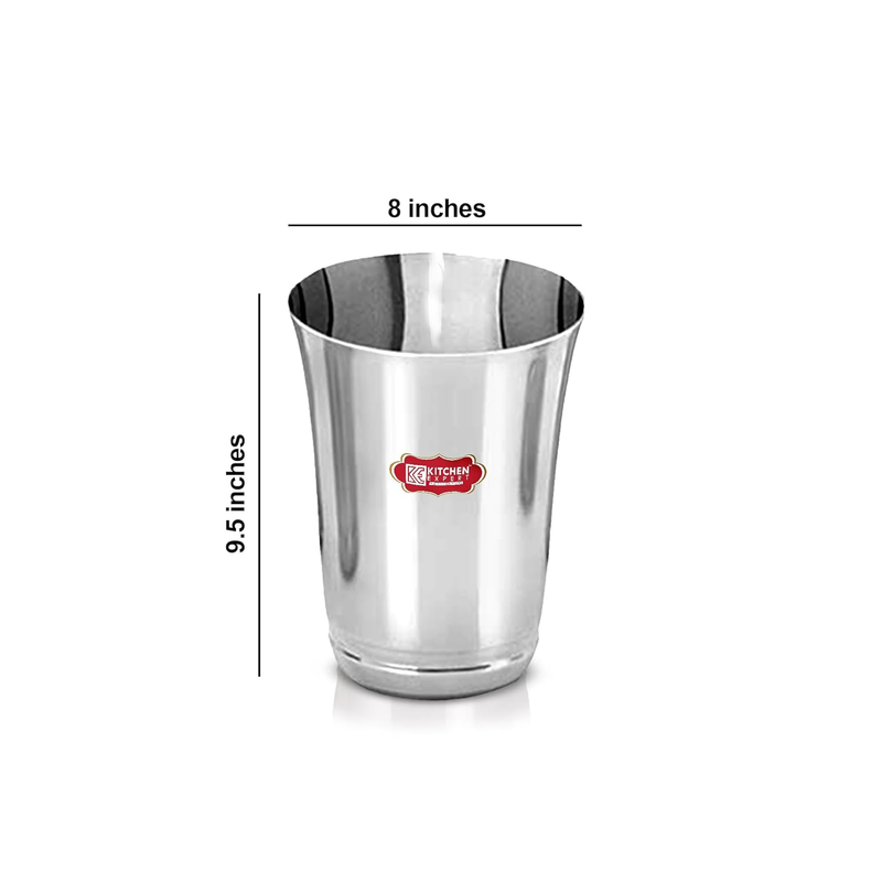 Stainless Steel Glass Set of 6-300 ML Each | Steel Glasses for Water | Curved Shape Glass with Mirror Polish