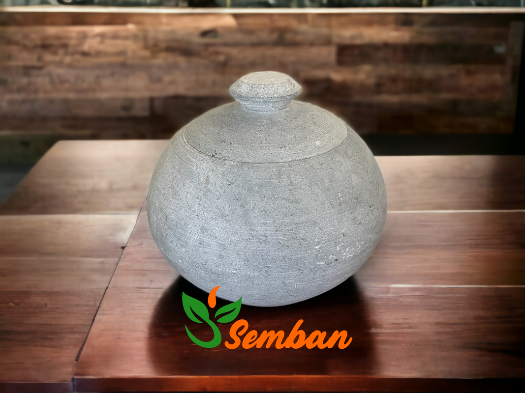 Semban India Traditional Soapstone Cookware Apple Shape Curd Pot, Traditional Pot, Storage Pot, Natural Pot