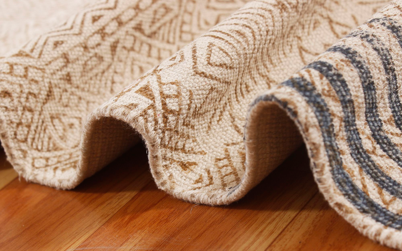 Hand Block Printed Cotton Dhurrie Bohemian Kitchen Kilim Rectangle Area Rug