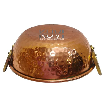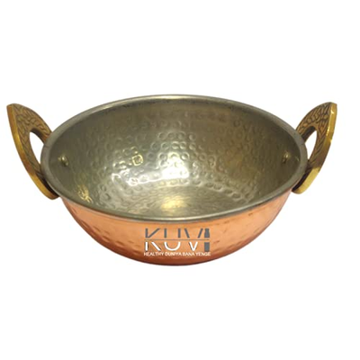 KUVI Copper Kalai Kadhai Pure Copper Karhai with Brass Handles for Cooking, Serving, Hotel Ware, Restaurant, Kitchenware & Dinning (1200ml , Pack of 1)