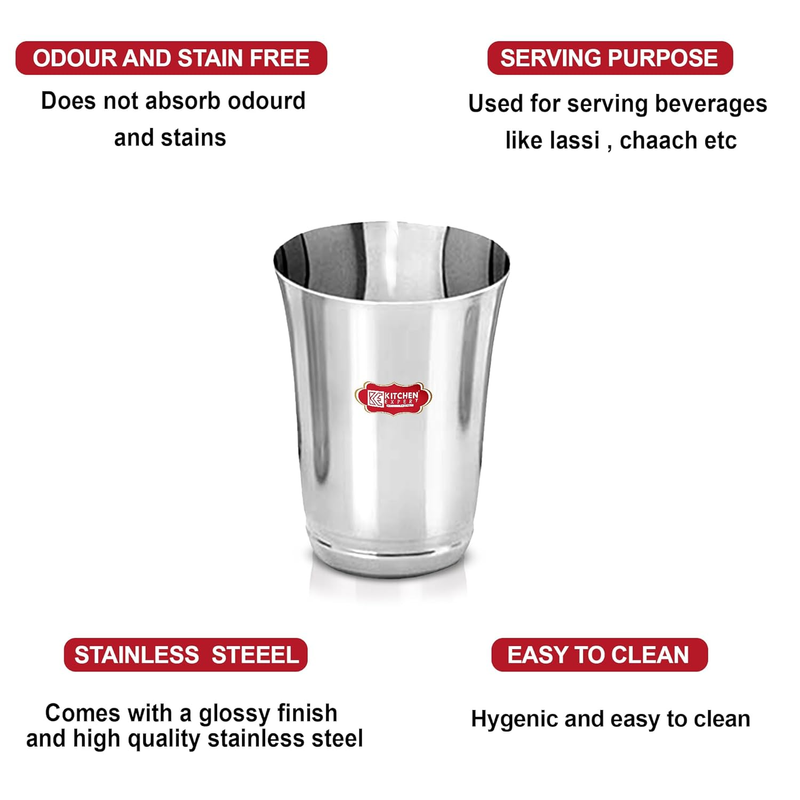 Color: Silver, Material: Stainless SteelPackage Contents: 6-Pieces Glass (300ml)Premium RangeHigh Grade SteelMirror Finish