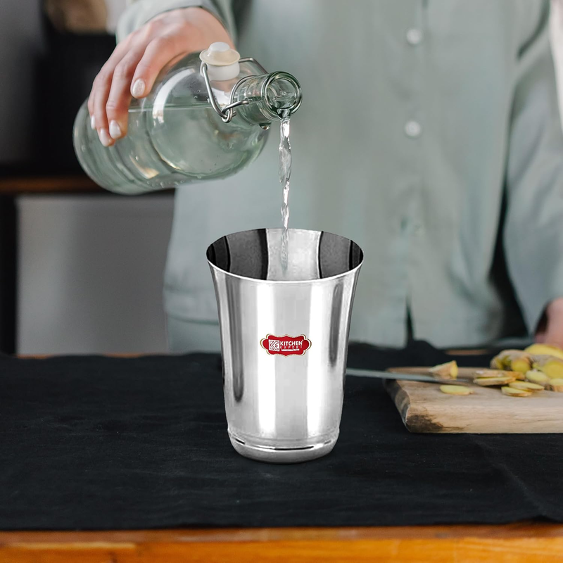 Stainless Steel Glass Set of 6-300 ML Each | Steel Glasses for Water | Curved Shape Glass with Mirror Polish